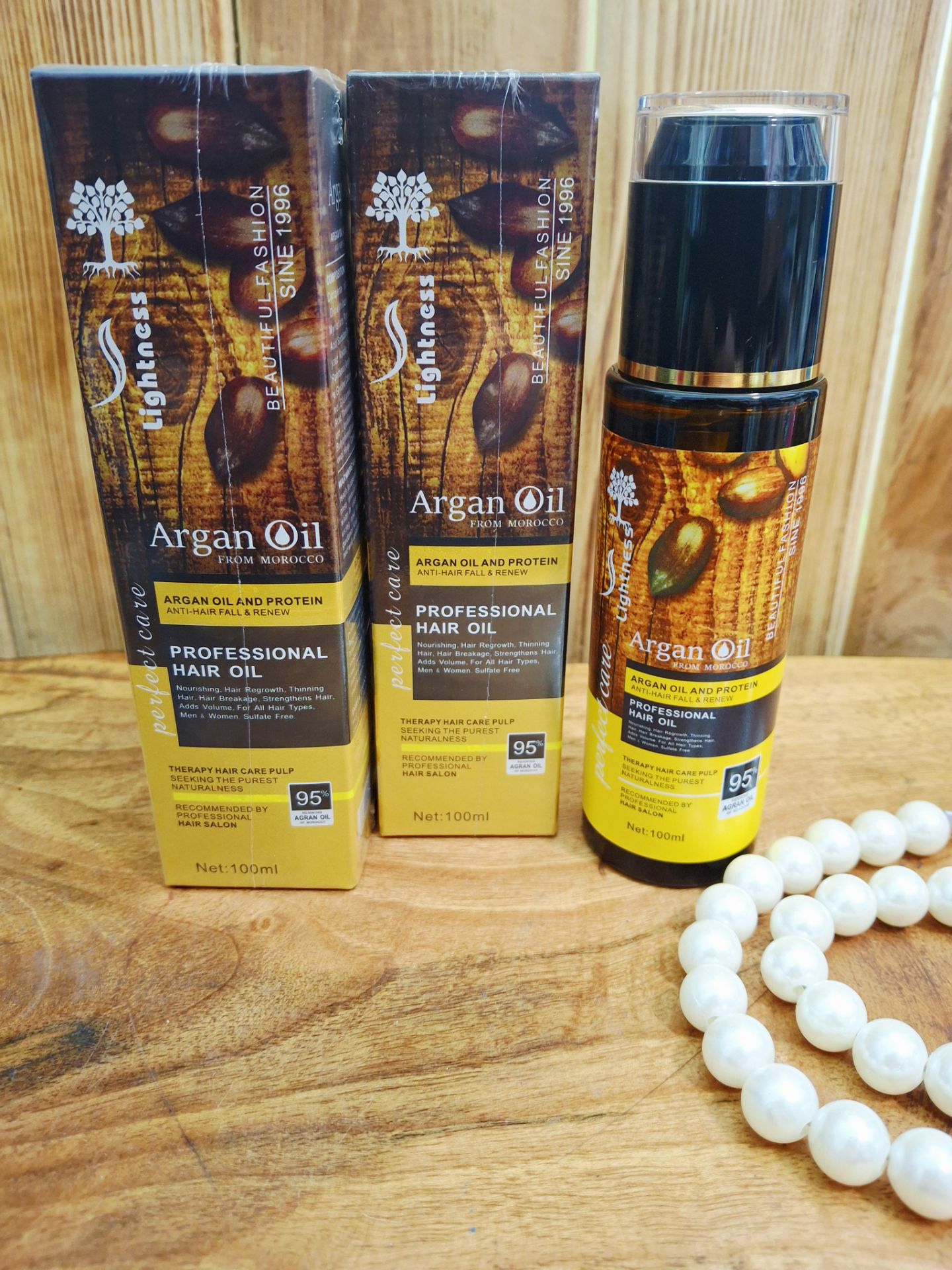 روغن آرگان لایتنس😍 اورجینال حاوی پروتئین حاوی پرو ویتامین B5 ساخت اسلواکی بدون حس چربی و سنگینی روغن مو ارگان آبرسان و لطیف کننده مناسب موهای شکننده و اسیب دیده روغن حرفه ای مناسب انواع مو خانم ها و آقایان بدون سولفات حجم دهندگی مو حجم۱۰۰میل انقضا۲۰۲۸ روغن مو آرگان لایتنس 95 درصد محصولی بی نظیر برای درخشان کردن و رفع وزی موهای آسیب دیده، محصولی از شرکت Lightness می باشد